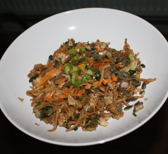 Finish with slices of fresh spring onion, pumpkin seeds and perhaps a dash of sriracha sauce. Enjoy!